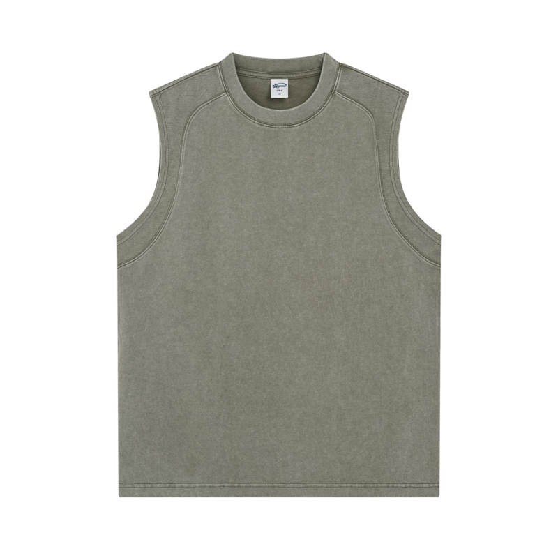 275G Batik Washed Distressed Patchwork Vest(Washed military green)