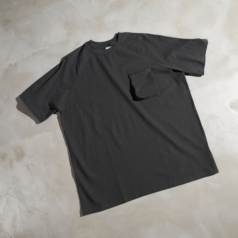 310G Mori-style workwear shirt, washed cotton, 3D workwear pockets, raglan sleeve design(Dark gray)