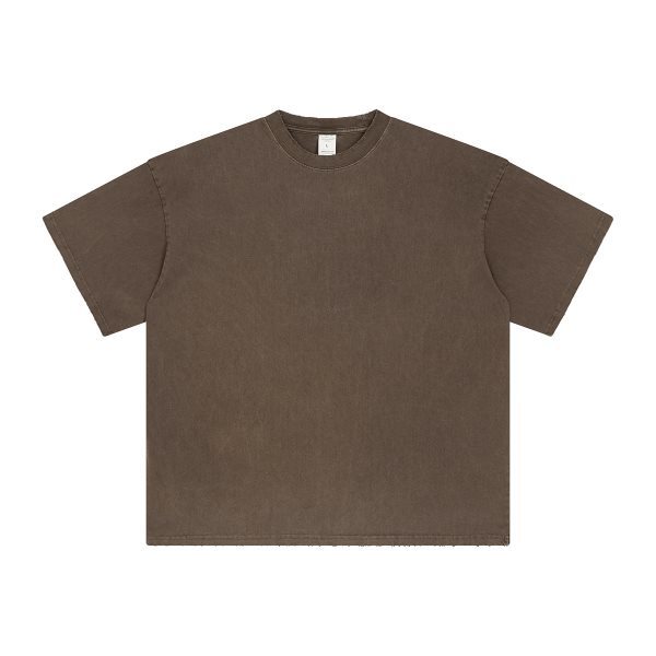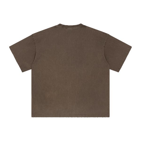 Basic distressed short-sleeved shirt with frayed edges and washed finish (brown)