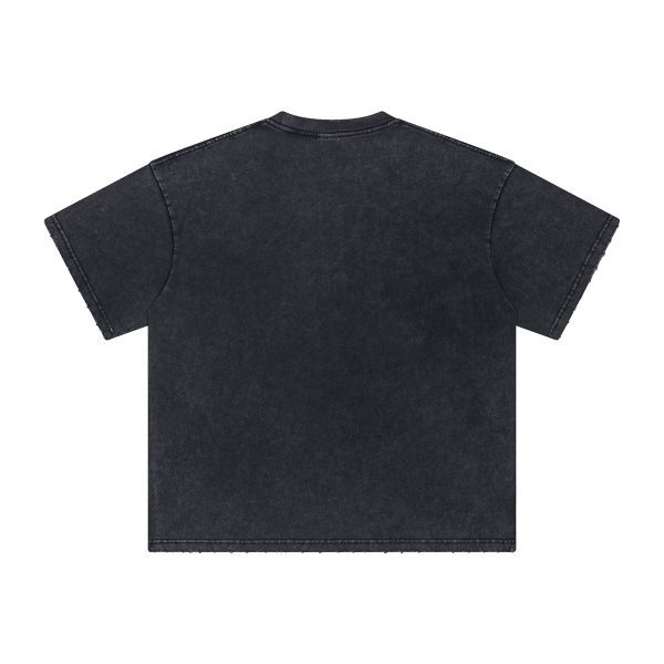 Basic distressed short-sleeved shirt with frayed edges and washed finish (gray-black)