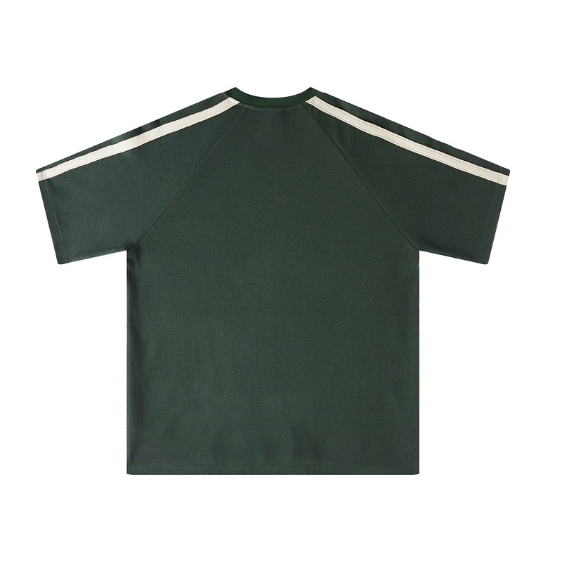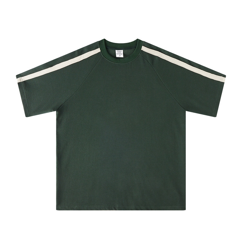 Textured Series: American-Style Unisex Color-Blocked Short-Sleeve T-Shirt(green)